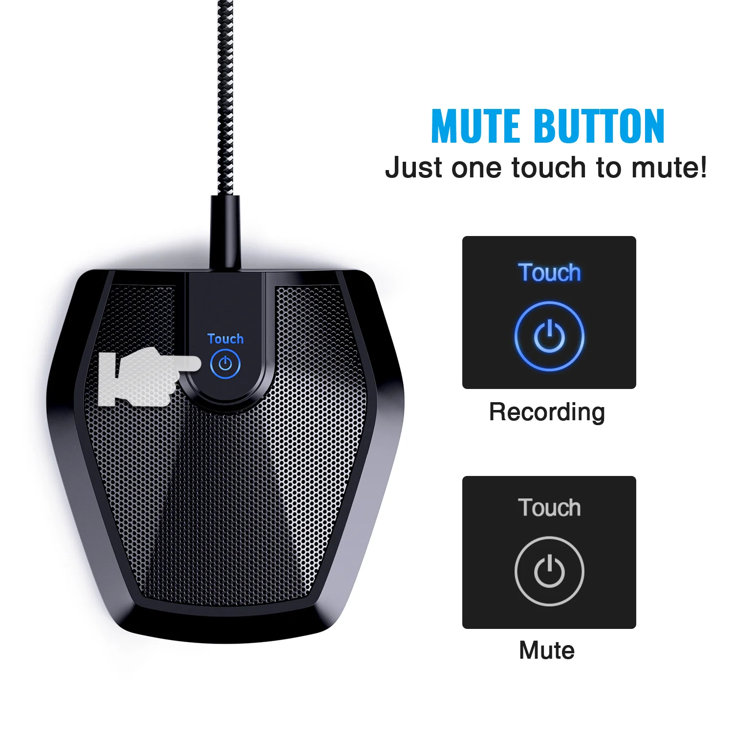 • Convenient Mute Button – Quickly mute/unmute your microphone. The built-in blue indicator light for checking whether the USB microphone is working.
